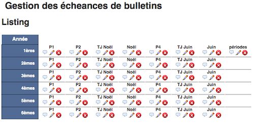 e-Bulletin vous permet également de gérer chaque année indépendamment au niveau des bulletins. Par exemple, les premières années peuvent être notées chaque quinzaine et passer en examen à Noël, Pâques & en juin, tandis que les rétho ne seraient évaluées que tous les 6 semaines et ne passer des examens qu'à Noël et Juin